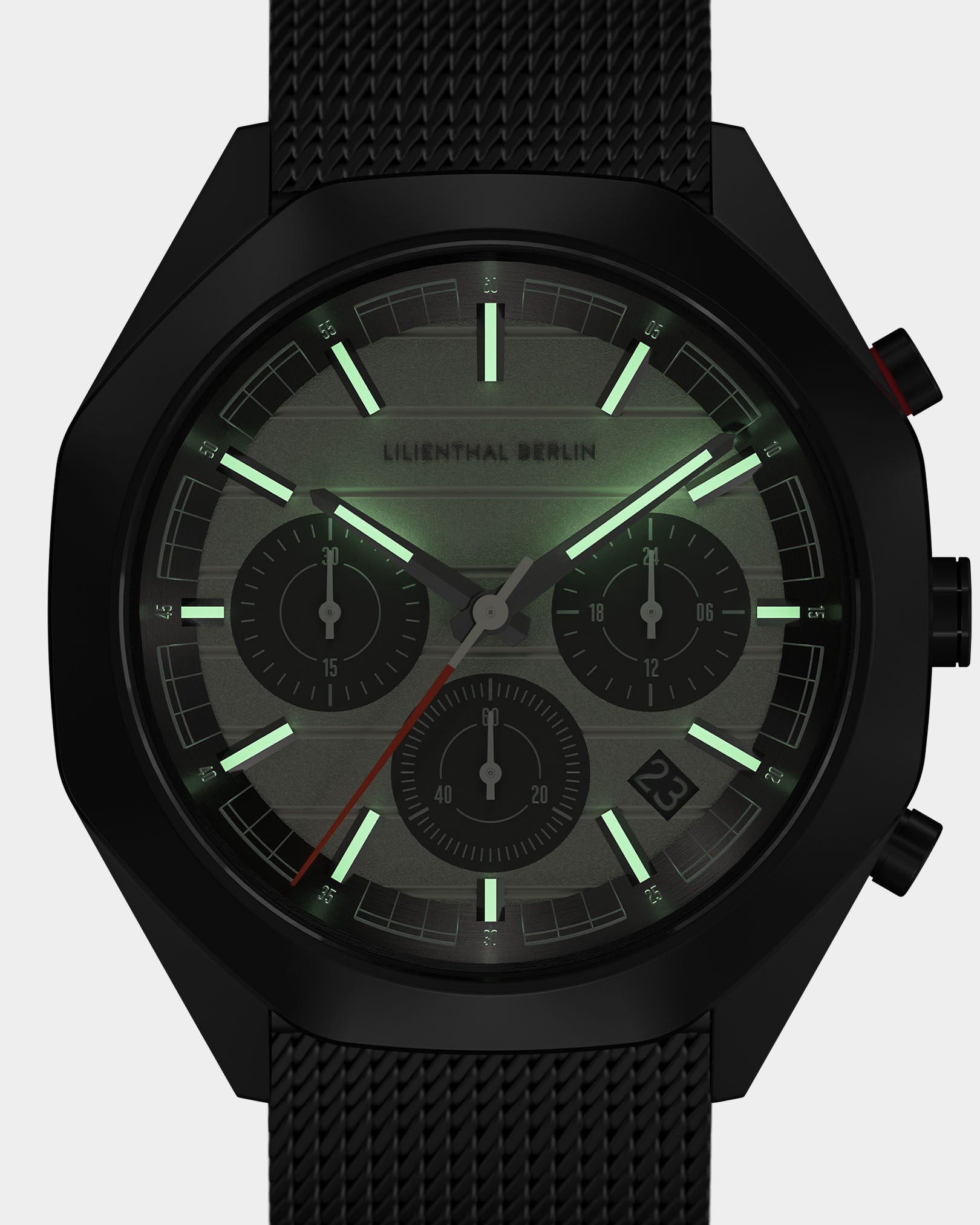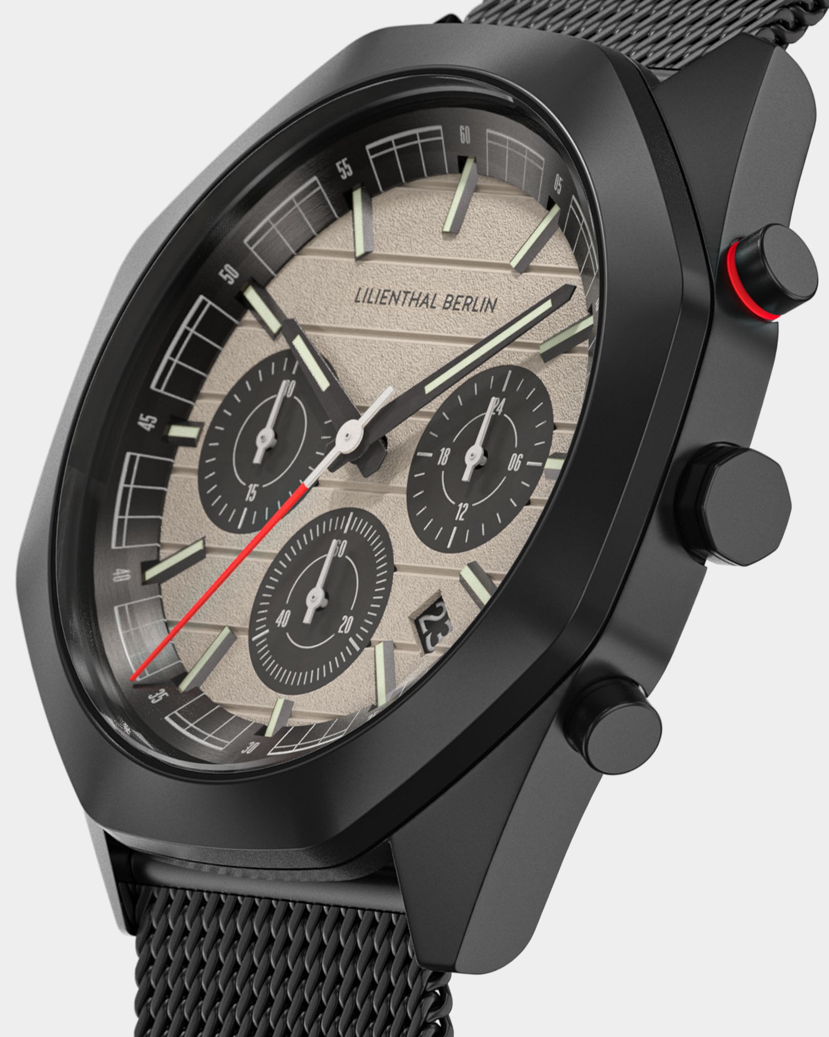 - Funcionamiento preciso y claro: cronógrafo, contador de 24 horas, fecha: todo está claro de un vistazo. El diseño se centra claramente en la funcionalidad esencial.