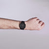 - Design monochrome distinctif : Le cadran noir laqué, le boîtier à finition mate et le bracelet en métal confèrent à cette montre un style à la fois sportif et élégant.