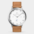 • Design iconico: Quadrante bianco laccato, cassa da 42,5 mm in argento con corona incastonata e cinturino intercambiabile in pelle - qui lo stile incontra la funzionalità.