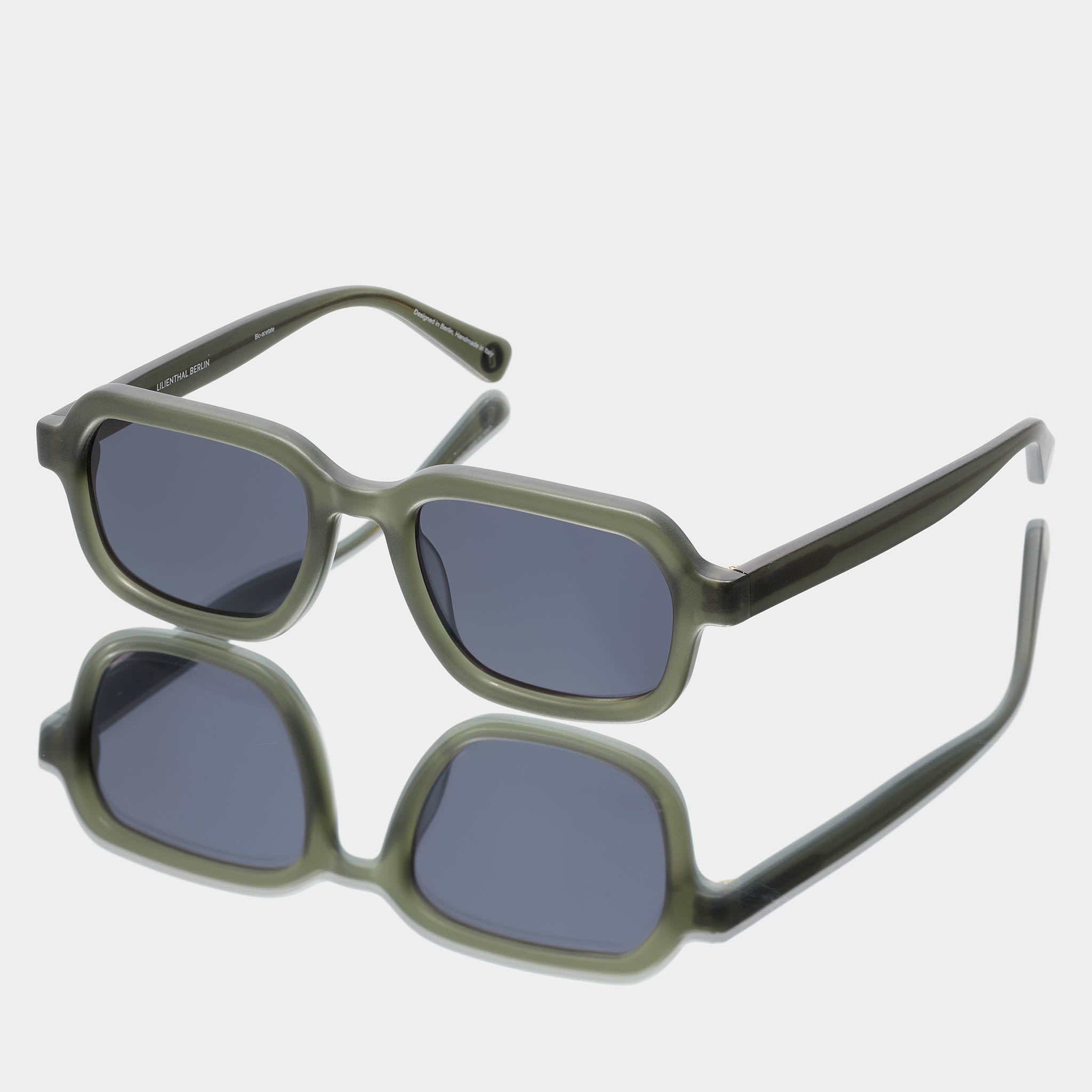 - Rectangular – Verfijnd: Het groene bio-acetaat frame met Wide Fit en afgeronde hoeken zorgt voor een look die zowel uitgesproken als ontspannen is.