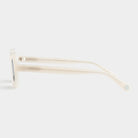 - Rectangular – Verfijnd: Het zijdeachtig witte bio-acetaat frame met Wide Fit heeft afgeronde hoeken en een hoogglans gepolijste afwerking – voor een look die zowel opvallend als ontspannen is.