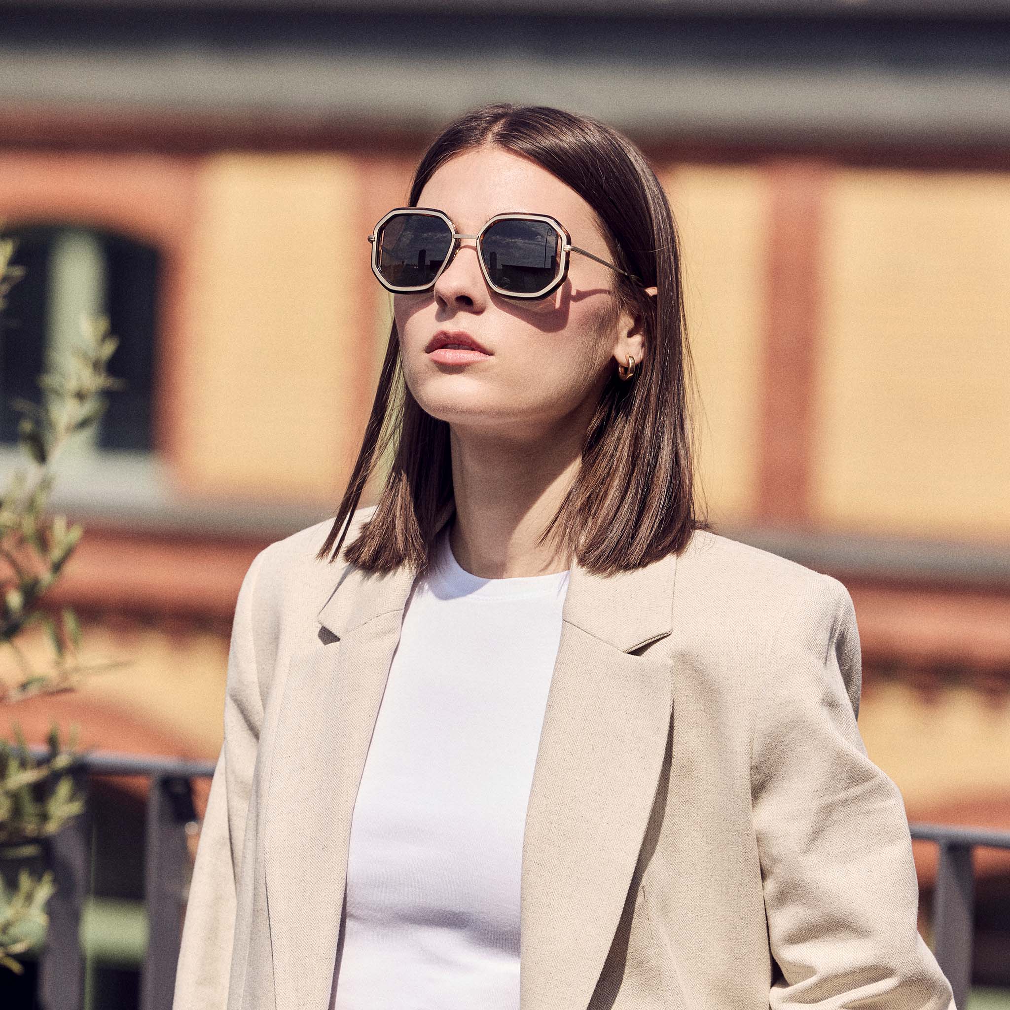 - Gedurfd ontwerp: Deze zonnebrillen met brede pasvorm hebben hoekige glazen en een onconventioneel montuur, waardoor ze een echte blikvanger zijn.