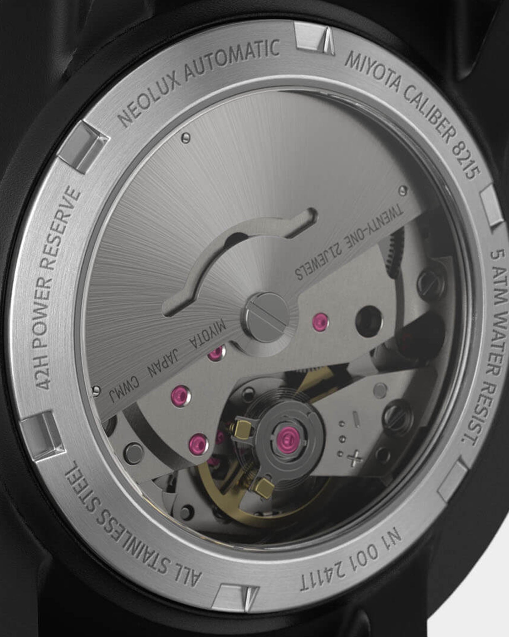 - Precisie in beweging: Het automatische Miyota 8215-uurwerk met 21 juwelen en een gangreserve van tot wel 42 uur is ingebouwd. Het haalt zijn energie uitsluitend uit de beweging tijdens het dragen en heeft uiteraard geen batterij nodig.