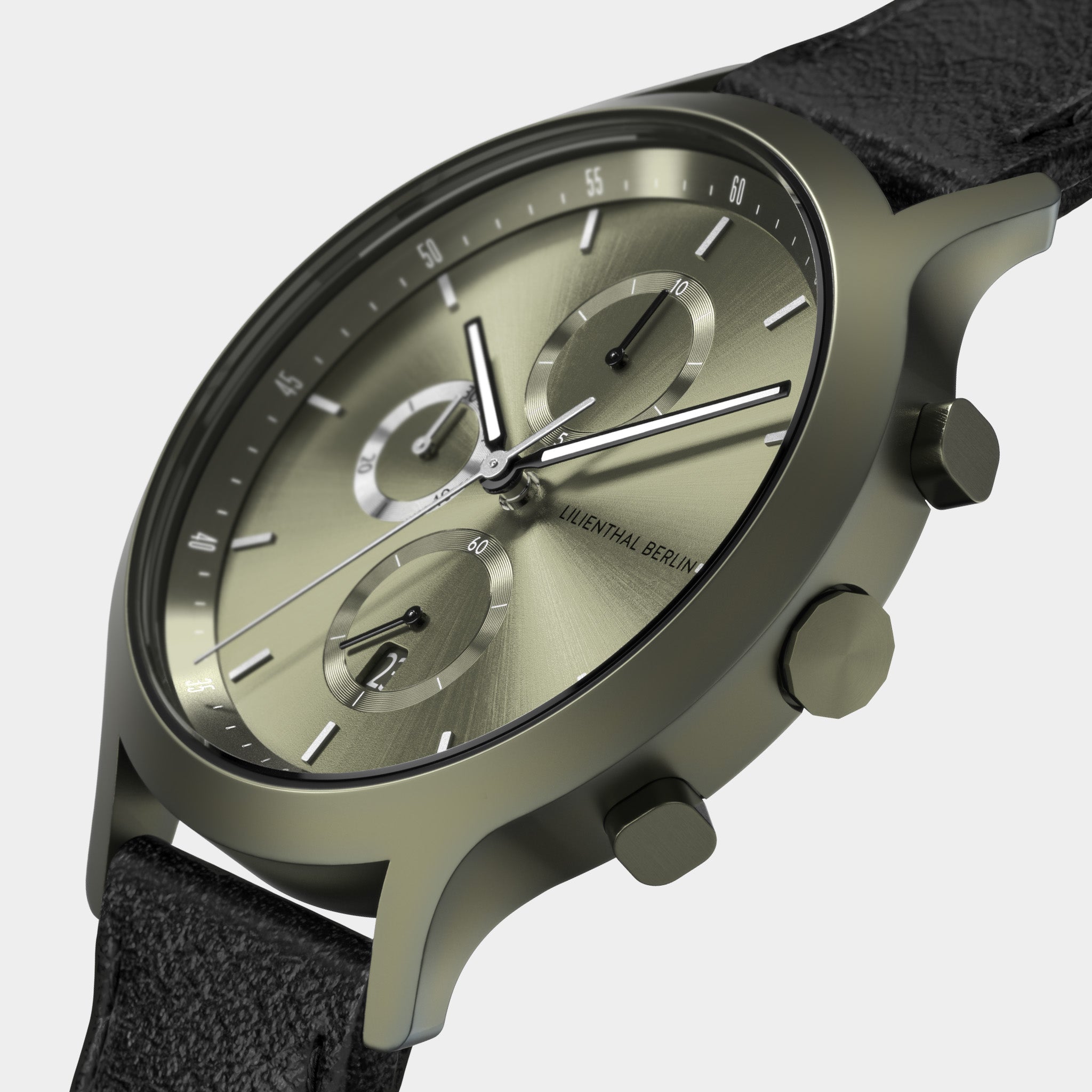 - Fresh and Unconventional: The vibrant, sunburst dial enhanced with Superluminova details, paired with a matte case and an interchangeable strap, makes this deep green chronograph a true eye-catcher.