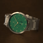 • Iconic Design: Matte green dial, 42.5 mm gold brushed case with an inset crown, and an interchangeable strap—where style meets functionality.