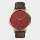 - Iconic Design: Matte red dial, 42.5 mm gold brushed case with an inset crown, and an interchangeable leather strap—where style meets functionality.