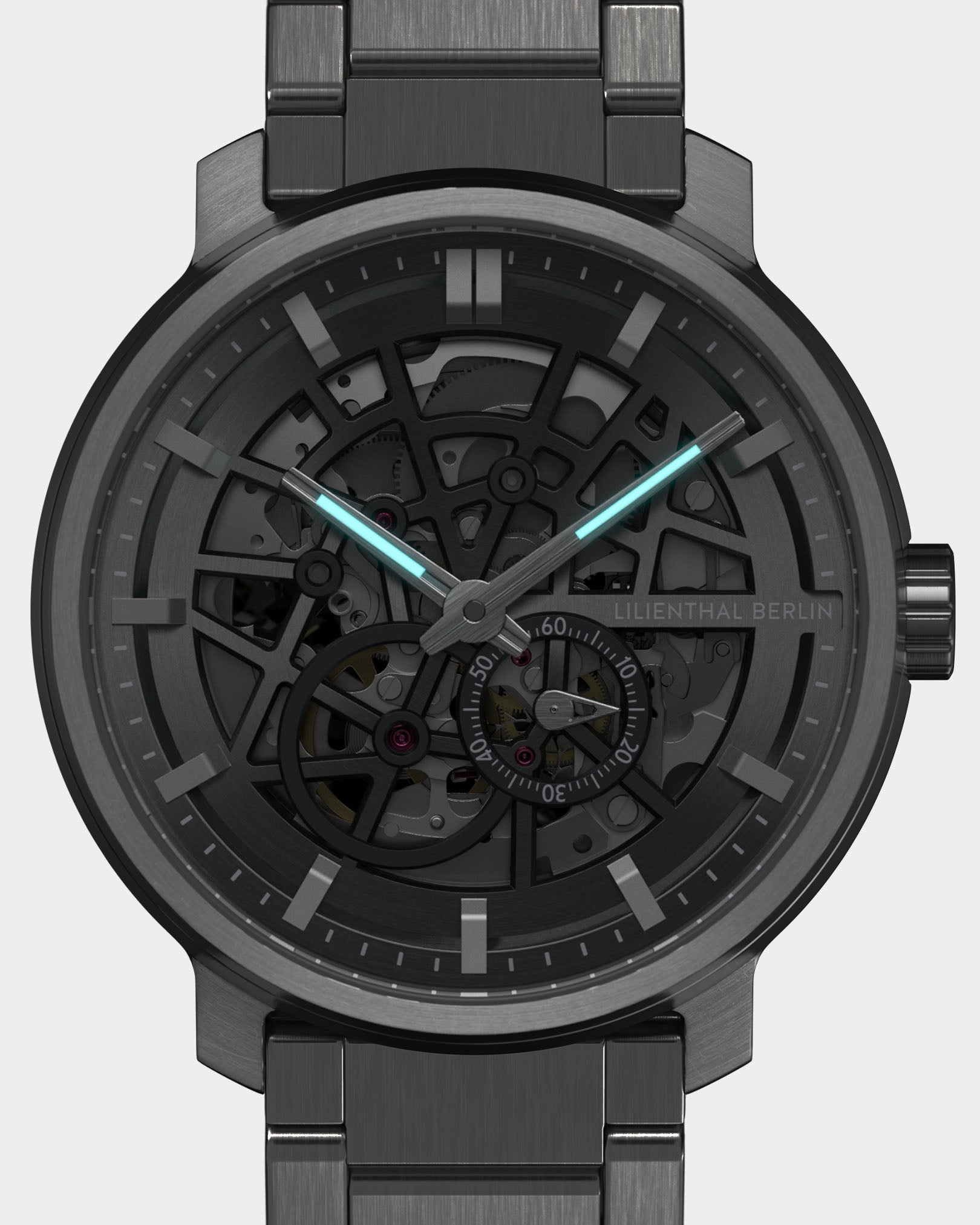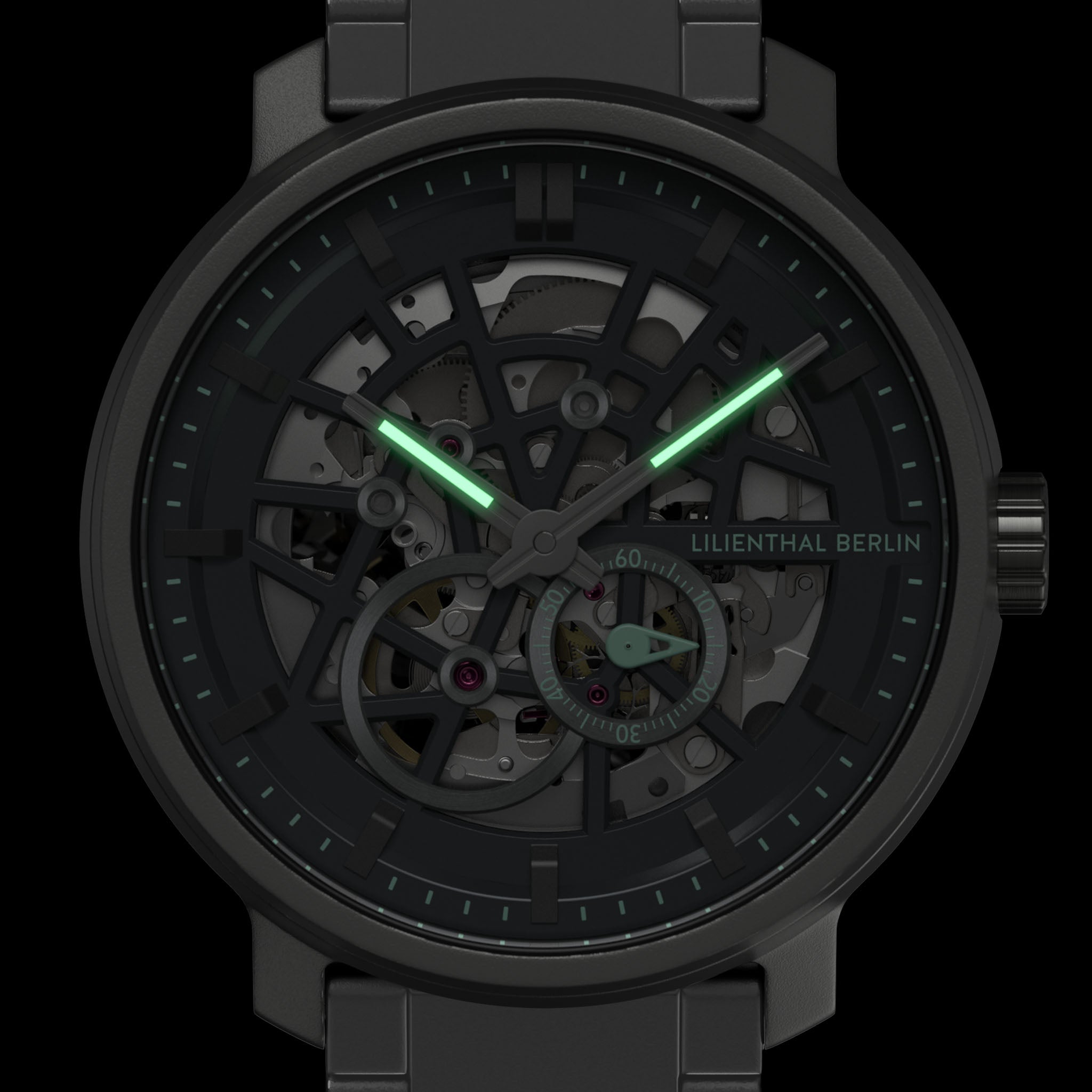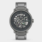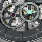 • Precision made visible: The skeletonized dial unveils the complex aesthetics of the automatic movement.