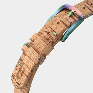- Vegan paper leather strap, made from cellulose, latex and cork are comfortable, durable, and can be swapped quickly thanks to the quick-release mechanism.